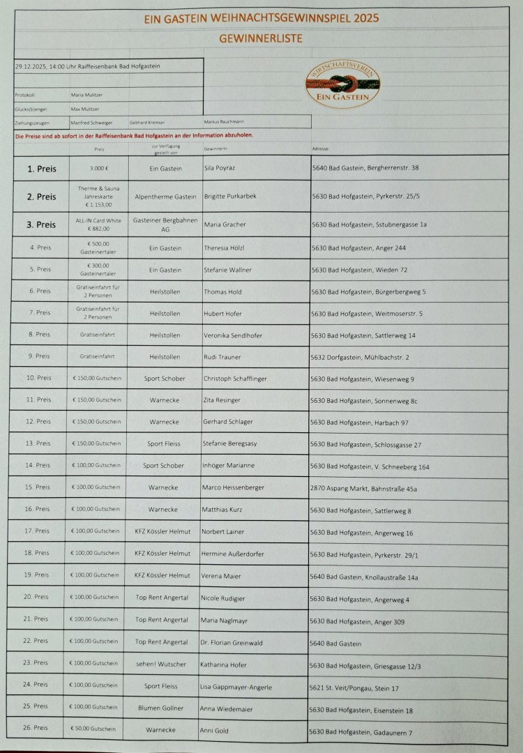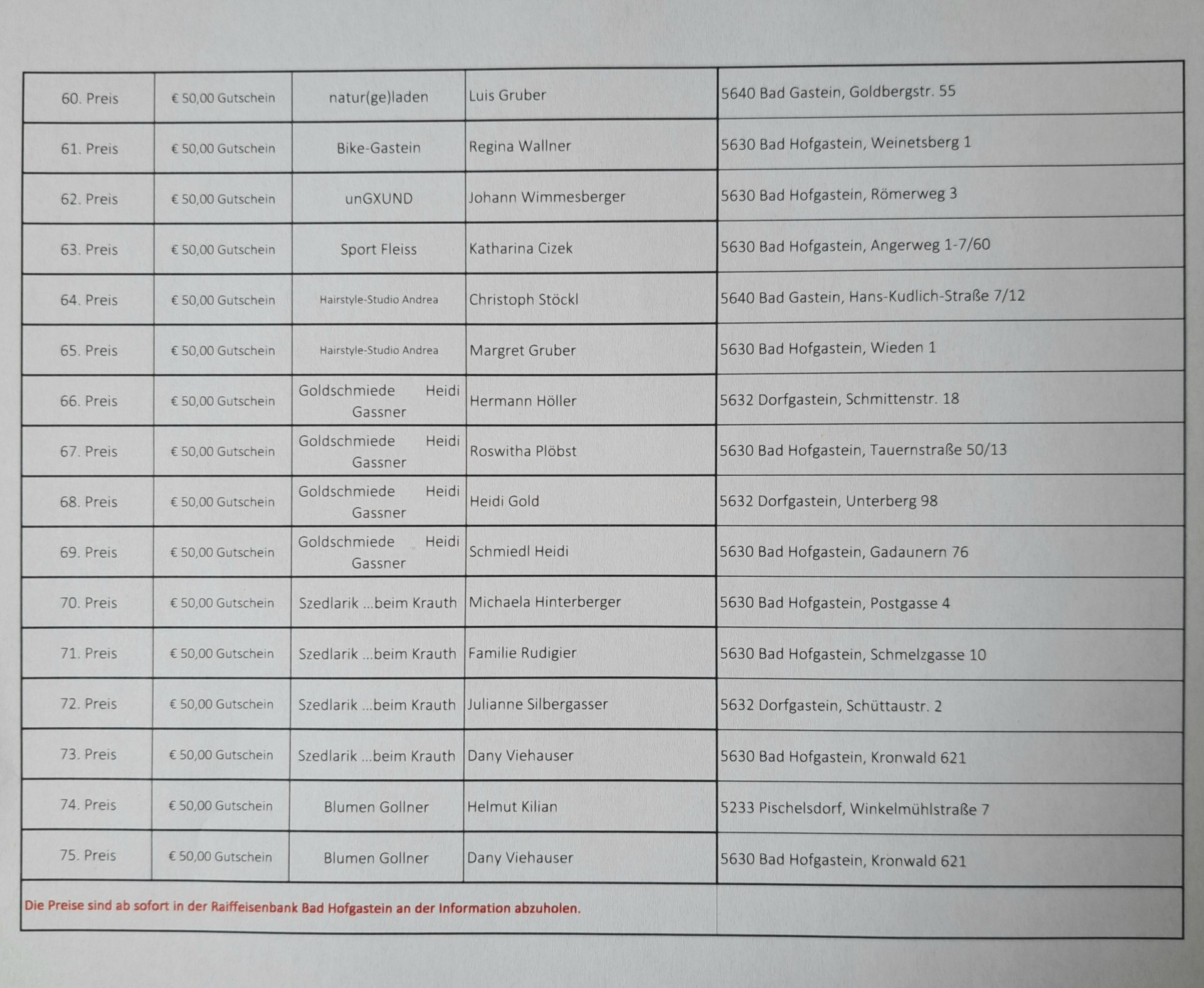 Die Preise sind ab sofort in der Raiffeisenbank Bad Hofgastein an der Information abzuholen.